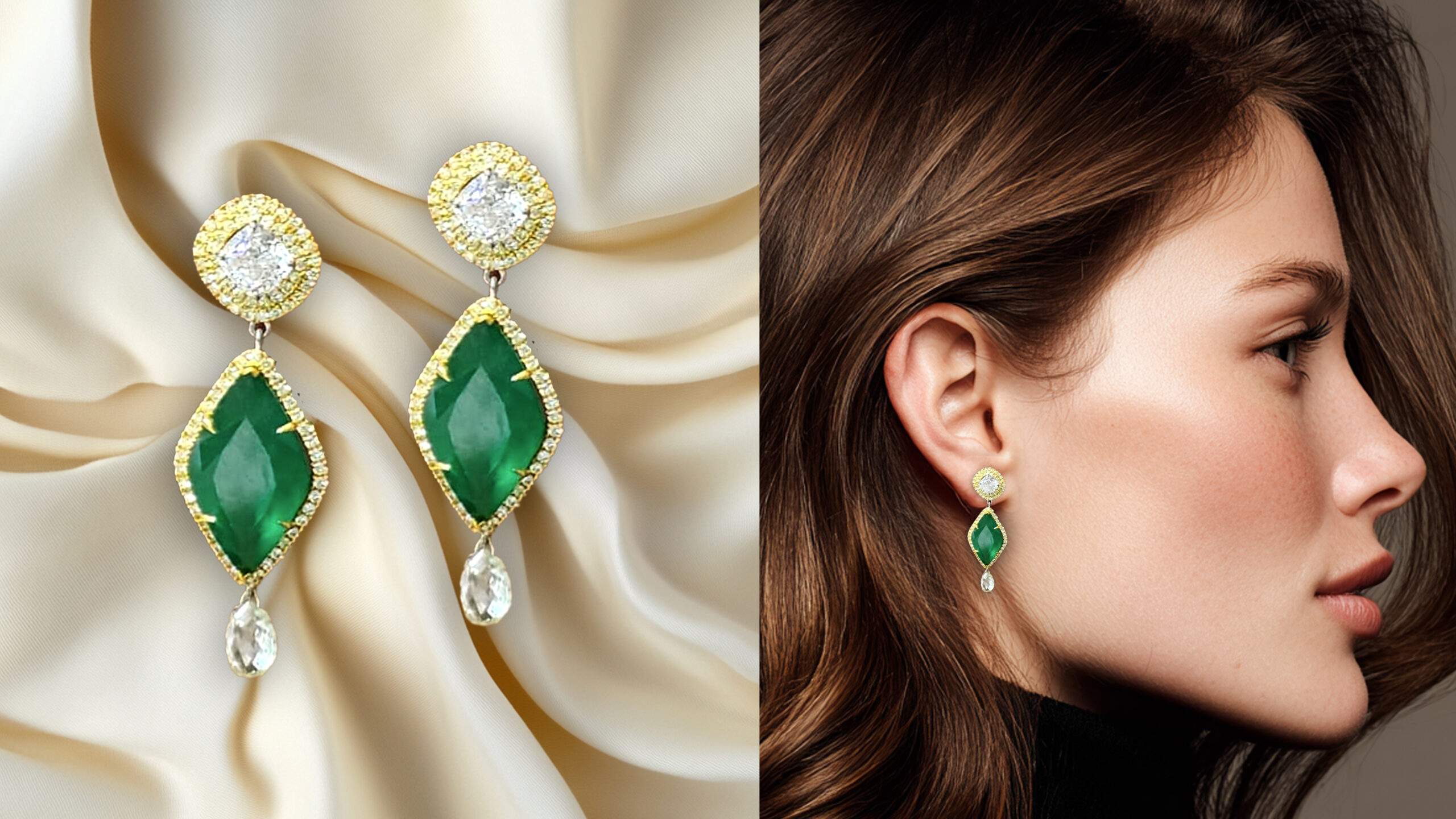 Rare, Custom Emerald and Diamond Earrings